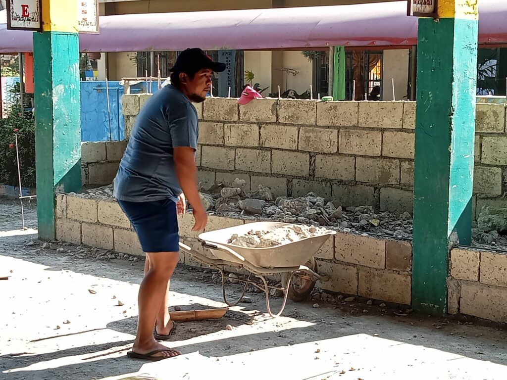 Maging ang 4Ps beneficiaries katuwang ang iba pang parents ay tumutulong din sa pagbabackfill ng bleachers.